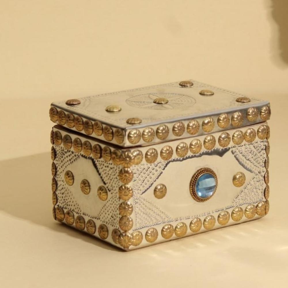 - التفاصيل: يتميز الصندوق بتصميمه الفريد مع زخارف ذهبية، مما يجعله تحفة فنية تزين أي مكان.